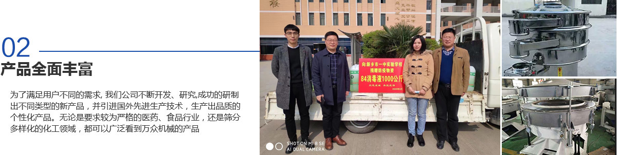 新鄉(xiāng)市萬眾機械設備有限公司是生產(chǎn)振動機械、篩分設備和過濾設備的專業(yè)廠家之一,擁有生產(chǎn)設備、雄厚的技術力量、完善的檢測手段、嚴格的管理體系。是河南省的商標之一,被河南省科學技術廳頒定為高新技術企業(yè),為新鄉(xiāng)市“守合同重信用企業(yè)“。質(zhì)量信得過產(chǎn)品、質(zhì)量服務消費者滿意企業(yè)、合格產(chǎn)品等榮譽稱號。擁有自主進出口經(jīng)營權,產(chǎn)品遍布各地,并遠銷北美、西歐及東南亞等地區(qū)。